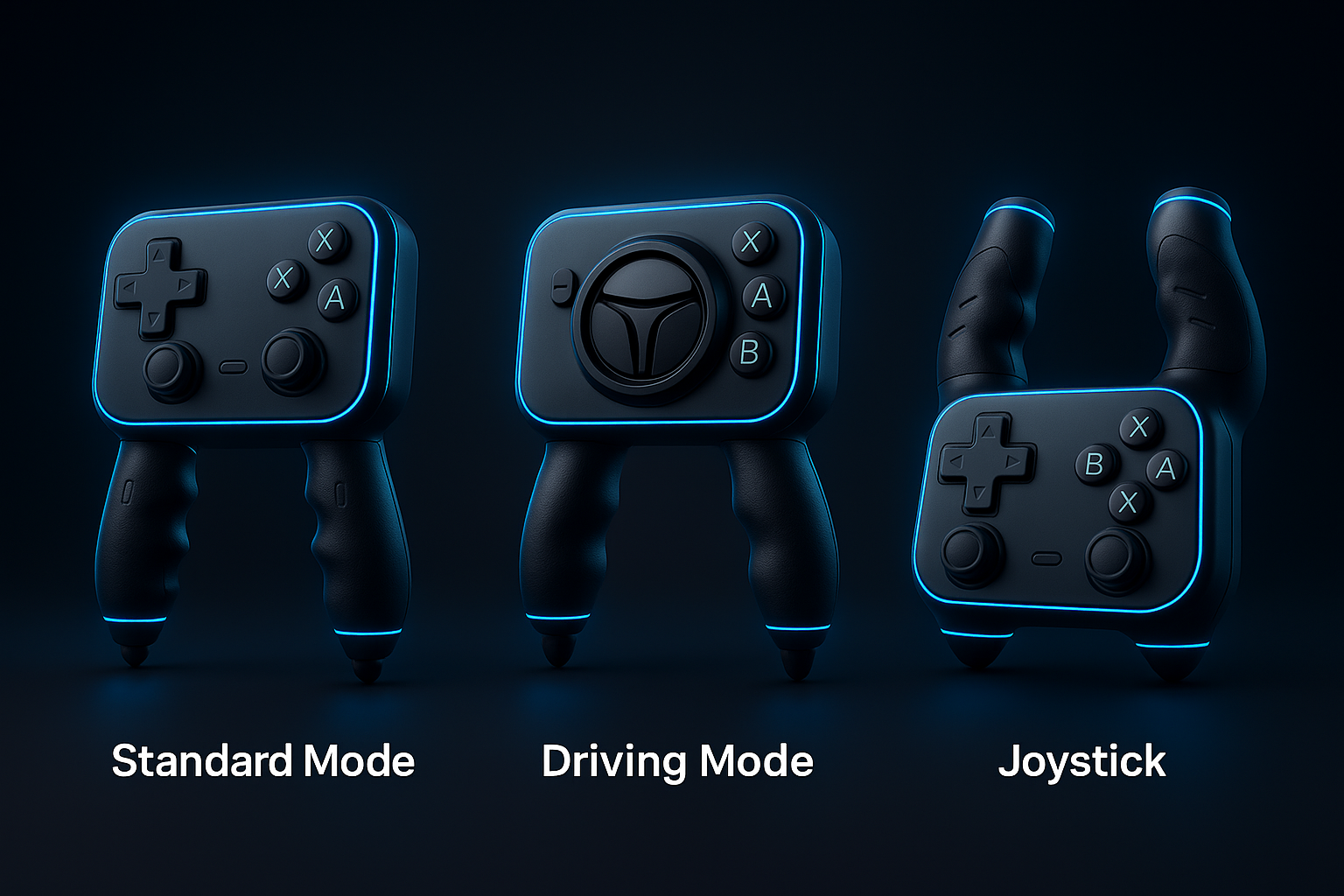 Four-mode controller switching between game, drive, flight and presentation modes. Patent Pending.