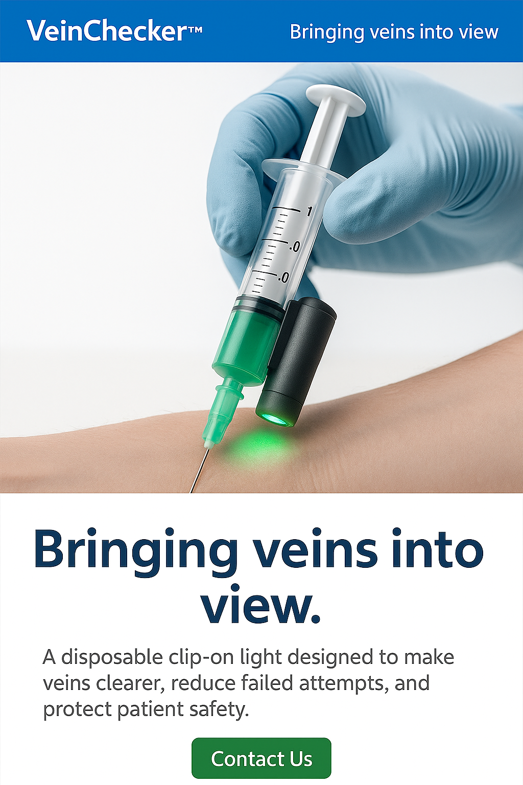 Portable green-light vein locator included in needle-exchange packs to help users find safe injection sites. Visit → veinchecker.com